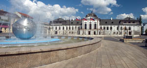 © r-o-x-o-r / fotolia.com - (Bratislava, Tschechei, Blick auf Palast mit Brunnen und Globus auf der linken Seite / Bratislava, Czech Republic, view of palace with fountain and globe on the left)